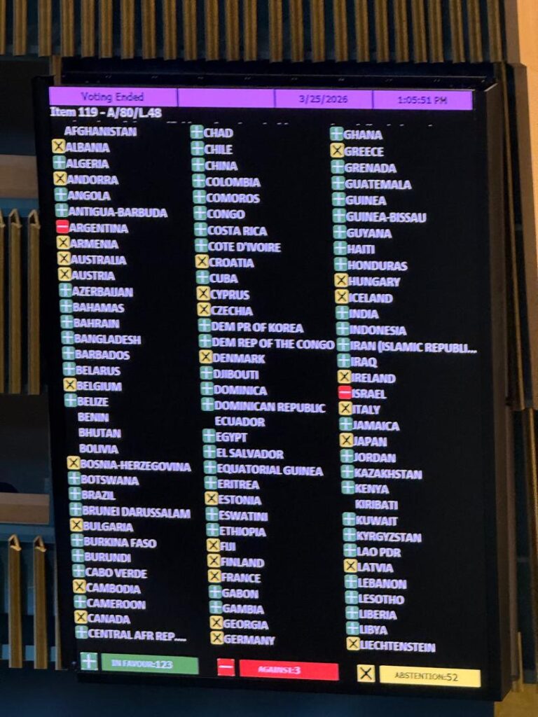 A total of 123 countries voted in favour of the resolution, signalling broad international support for recognising the scale and lasting impact of the transatlantic slave trade. Supporters say the move is an important step toward healing and addressing the enduring social and economic consequences of slavery for people of African descent worldwide.